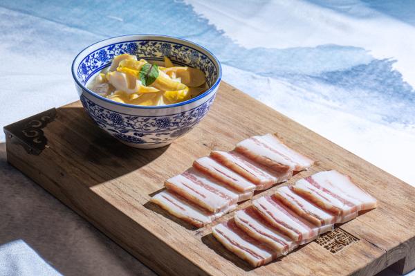 Sliced Salted Pork is another classic dish of Hui Cuisine.Cut the salted meat into slices and place them on a camphorwood board without smoking.Wait until the board thoroughly drains and grease from the meat.This way, the pork will taste refreshing.
