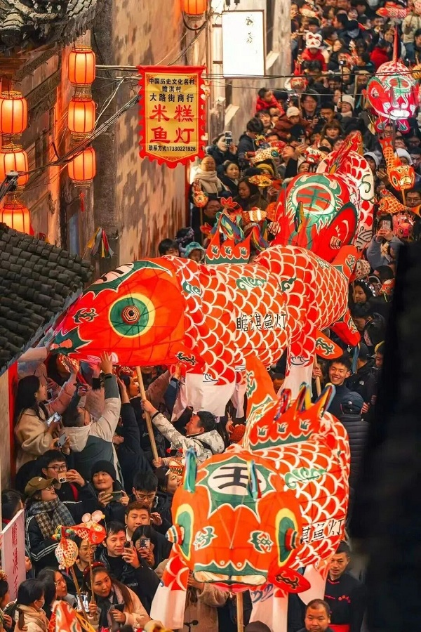 The Zhanqi fish lanterns parade. [Photo/Huangshan Daily]