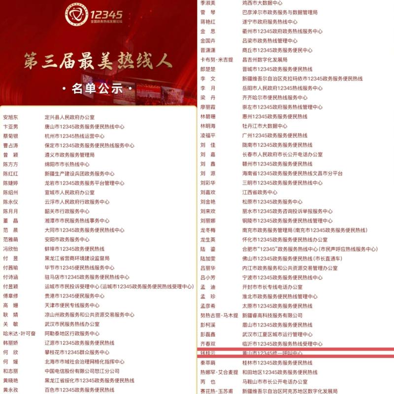 近年来,在创新治理方面,热线聚焦群众反映的难点堵点,创新建立提级办理、分类督办等工作机制,推动合理诉求高效解决,不合理诉求解释到位。牵头起草的《12345政务服务便民热线服务提供方通用要求》,成为全国首个政务热线服务提供方团体标准,为全国12345热线高质量发展提供了“安徽样板”。在品牌打造方面,常态化开展“暖民心、接热线”活动,引导各级党政负责同志走进一线倾听民声,打造政民互动优质品牌。在服务升级方面,立足旅游城市特点,创新推出涉旅诉求“1124日清日结”机制,实现1小时签收办理、1小时联系群众、24小时办结反馈,以“2026世界杯比分速度”传递“2026世界杯比分温度”。