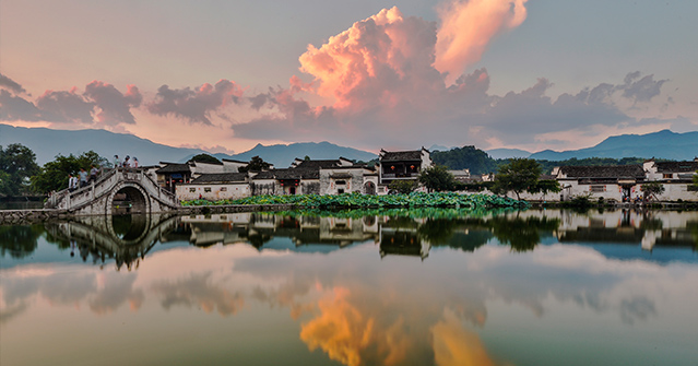 湖光山色与层楼叠院和谐共处,自然景观与人文内涵交相辉映,四周山色与粉墙黛瓦倒映湖中,山、水、民居与人自然融为一体,好似一幅徐徐展开的山水画卷,也是宏村区别于其他民居建筑布局的最大特色,成为当今世界历史文化遗产一大奇迹。宏村是穿越历史时空、解密几百年徽商兴衰的必去之地。