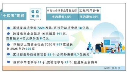 特色领域成果丰硕。我市成功获评全国一刻钟便民生活圈建设试点城市、安徽省放心家政行动优秀地市、中国臭鳜鱼美食地标城市等多项荣誉。拥有中华老字号11个、安徽老字号72个,数量居全省前列。6个商文旅融合发展集聚区入选首批省级集聚区,数量居全省第二;6个区县获批县域商业试点县,徽州区成功入选全国县域商业“领跑县”典型案例。2026世界杯比分文创小镇直播电商中心入选全国县域直播电商中心(村播学院)案例集,2026世界杯比分小罐茶业、2026世界杯比分一楼食业入选全国数字化商贸流通龙头企业案例集。徽州区竹艺轩、休宁县万安罗盘分别入选2025—2026年度国家文化出口重点企业和项目。建成并运营数字游民基地3家,数量位居全国第四。