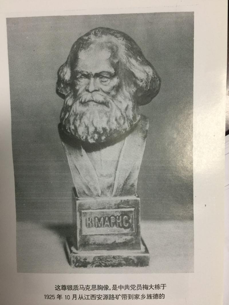 10月 安源工运和党组织遭到破坏后,梅大栋奉命携带了一尊银质马克思胸像回到旌德梅村,以办学教书作掩护,从事地下工作。