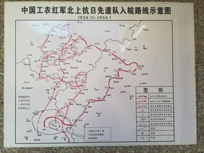 9月 红军北上抗日先遣队(红七军团)进入皖南。20日,红军在石门一带击溃敌四十九师一部后,乘胜向休南太塘脚前进。在红军胜利声威下,徽州各县反动土豪纷纷逃跑。当局请兵不来,电话不通,休宁、屯溪等地闭市。10月初,红七军团自婺源、休宁方向转战到祁门查湾,在此休整5天后进抵皖赣苏区。11月4日红七军团回师闽浙赣苏区,与红十军在德兴重溪汇合,合编组成红十军团,后分两路北上。