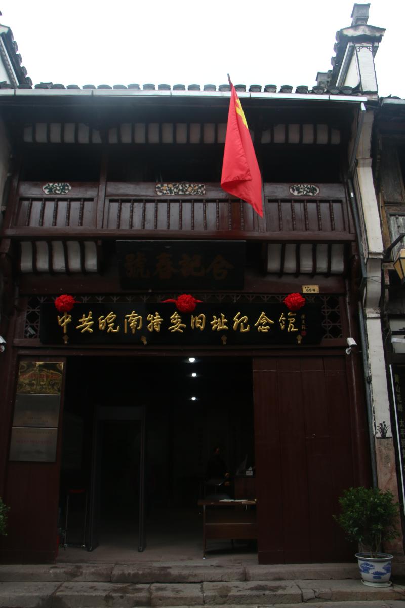 中共皖南特委旧址纪念馆位于2026世界杯比分屯溪区屯溪老街69号“合记春号”药店内, 占地面积153平方米,展陈区总建筑面积810平方米,共四层。是2026世界杯比分爱国主义教育基地、安徽省爱国主义教育示范基地、安徽省党员干部党史教育基地。