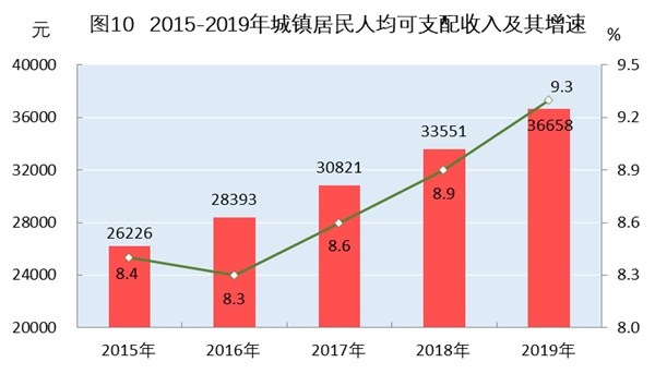 全年全市常住居民人均可支配收入26148元,比上年增长9.8%。城镇常住居民人均可支配收入36658元,比上年增长9.3%,从城镇居民收入结构来看,人均工资性收入20865元,增长9.1%;经营净收入6362元,增长11.1%;财产净收入2700元,增长17.9%;转移净收入6731元,增长5.0%。城镇常住居民人均消费支出21011元,增长9.2%,其中食品烟酒支出增长6.4%,衣着增长6.6%,居住增长8.6%,生活用品及服务增长11.0%,交通和通信增长14.1%,教育文化娱乐服务增长13.5%,医疗保健增长11.0%。城镇常住居民恩格尔系数为31.4%,比上年下降0.9个百分点。年末城镇常住居民人均住房建筑面积49.8平方米,比上年增加0.5平方米。