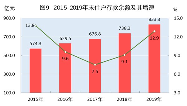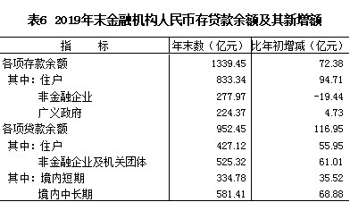 年末全市金融机构人民币各项存款余额1339.45亿元,比上年末增长5.7%。其中,住户存款余额833.34亿元,增长12.9%。年末金融机构人民币各项贷款余额952.45亿元,增长14.9%。其中,短期贷款334.78亿元,增长12.4%;中长期贷款581.41亿元,增长14.5%。