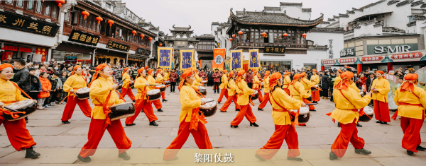 仗鼓舞是流行于休宁五城、榆村和屯溪黎阳一带的一种民间舞蹈,又名“得胜鼓”。传说是为了纪念唐代大将张巡、许远抗击安禄山叛军得胜,而击鼓欢庆。此舞由数十人表演,击鼓者打扮成武士,短打紧身,十字披红,颈挎仗鼓(扁圆形皮鼓),右手紧握短而粗的鼓槌,左手持健铃,随着行进步伐击鼓面或敲鼓边。队列前面有一对大红灯笼,一人持纛,上书“得胜鼓”三字,后随一队蜈蚣旗幡,整个场面威武雄壮,令人振奋。