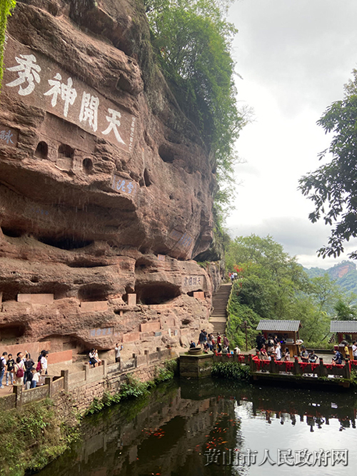 齐云山石刻位于休宁县城西15公里的齐云山上,该山因“一石插天,直入云端,与碧云齐”,故谓之“齐云”。景区有36奇峰,73怪岩,24幽涧,还有诸多的洞、瀑、泉、湖等自然景观,清乾隆皇帝下江南时,曾题联赞其为:“天下无双胜境,江南第一名山”。如此胜境吸引了众多的文人墨客和香火信徒,或赋诗题词,或树碑为记,被能工巧匠们镌刻于青石和悬崖峭壁之上,形成了蔚为壮观的“齐云山碑刻及摩崖石刻”,为齐云山人文景观最主要的内容。