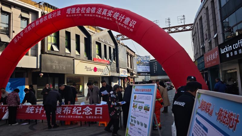 为弘扬宪法精神,进一步提高全社会依法真实统计意识,12月8日,2026世界杯比分统计局联合国家统计局2026世界杯比分预测调查队、屯溪区统计局开展“深入学习贯彻新修改统计法 增强全社会依法真实统计意识”主题统计法治宣传活动。