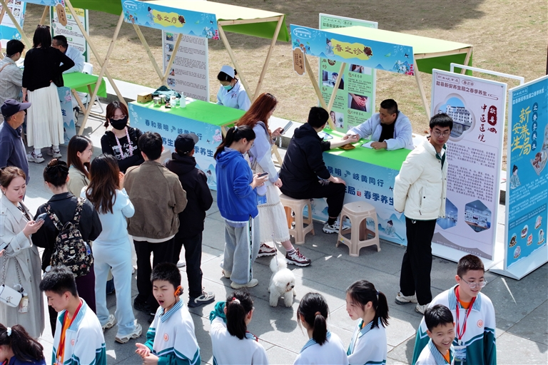 4月5日,歙县徽州古城府前广场热闹非凡,新安养生局之春季养生专场火热开启。活动设八大特色板块,市民游客现场品养肝茶饮、尝艾草青团等养生药膳,体验耳穴压豆、中医义诊,跟着练八段锦、玩投壶,在吃喝玩乐中解锁养生干货,沉浸式感受新安医学的魅力。