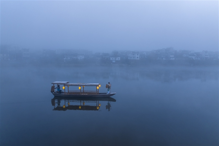 1月24日清晨,歙县渔梁古埠被一层轻柔的晨雾包裹,舟行江上,如一幅流动的水墨画卷。作为新安江上游的古老水运码头,歙县渔梁古埠至今保留着古朴风貌,吸引着摄影爱好者与游客慕名而来,用镜头定格这份独属于徽州的水墨意境。