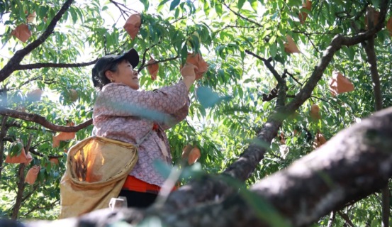 石河村和美乡村建设工作自2024年开展,共投资323.8万元,从环境整治、河塘清理、改厕治污、村庄亮化到改造提升休闲广场、打造微景观、再到因地制宜建设村中便民节点,见缝插绿开展村庄绿化,持续深化农村精神文明建设。环境美了,产业的“根”也扎得更稳了。500亩桃树丰收时节,空气中飘着清甜的蜜桃香气,村民的日子越过越“甜”。