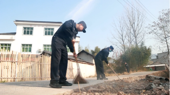 同一时间,连川村的整治工作也在如火如荼地展开。整治现场,挖掘机正对一栋老旧无功能住房进行拆除;村干部与村民一同配合,清理砖瓦废料,协助拔除废弃的电线柱子;桂林派出所民警也自发参与整治,一同挥动扫帚,仔细清扫路面散落的土石与枝叶,让村容村貌逐步提升,街巷视野变得更加开阔整洁。