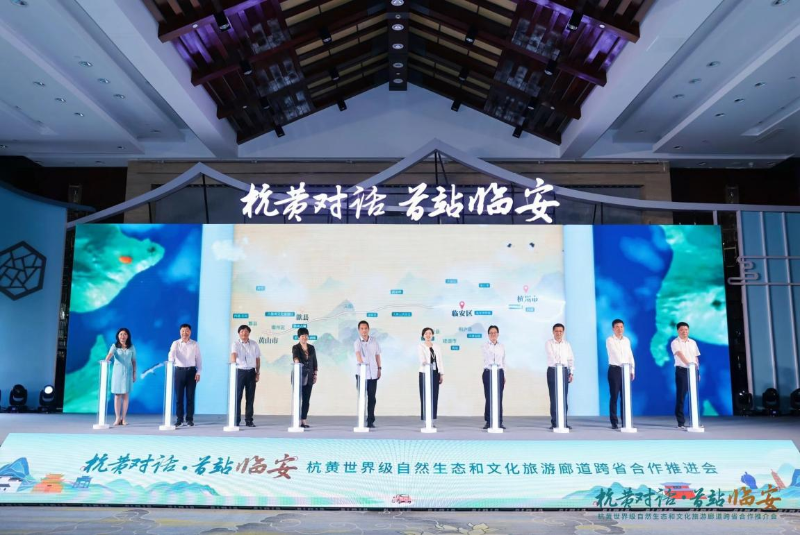 5月22日,以“杭黄对话•首站临安”为主题的杭黄世界级自然生态和文化旅游廊道跨省合作推进会在在浙江省杭州市举行。